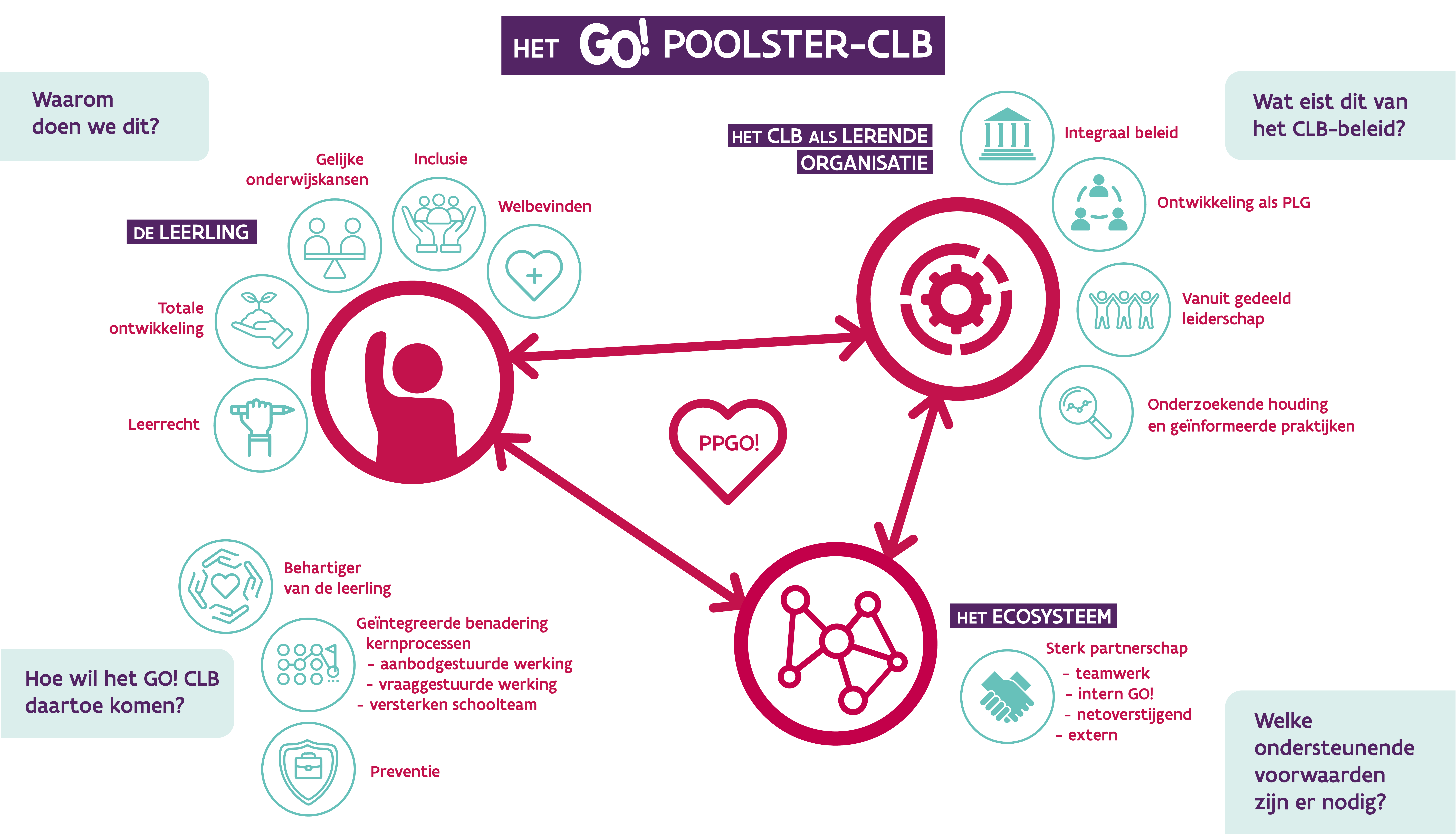 De GO! CLB’s hebben als doel om de gezondheid, groei en ontwikkeling van alle leerlingen te bevorderen, hun welbevinden te verhogen, vroegtijdig schoolverlaten te voorkomen en gelijke kansen te creëren.